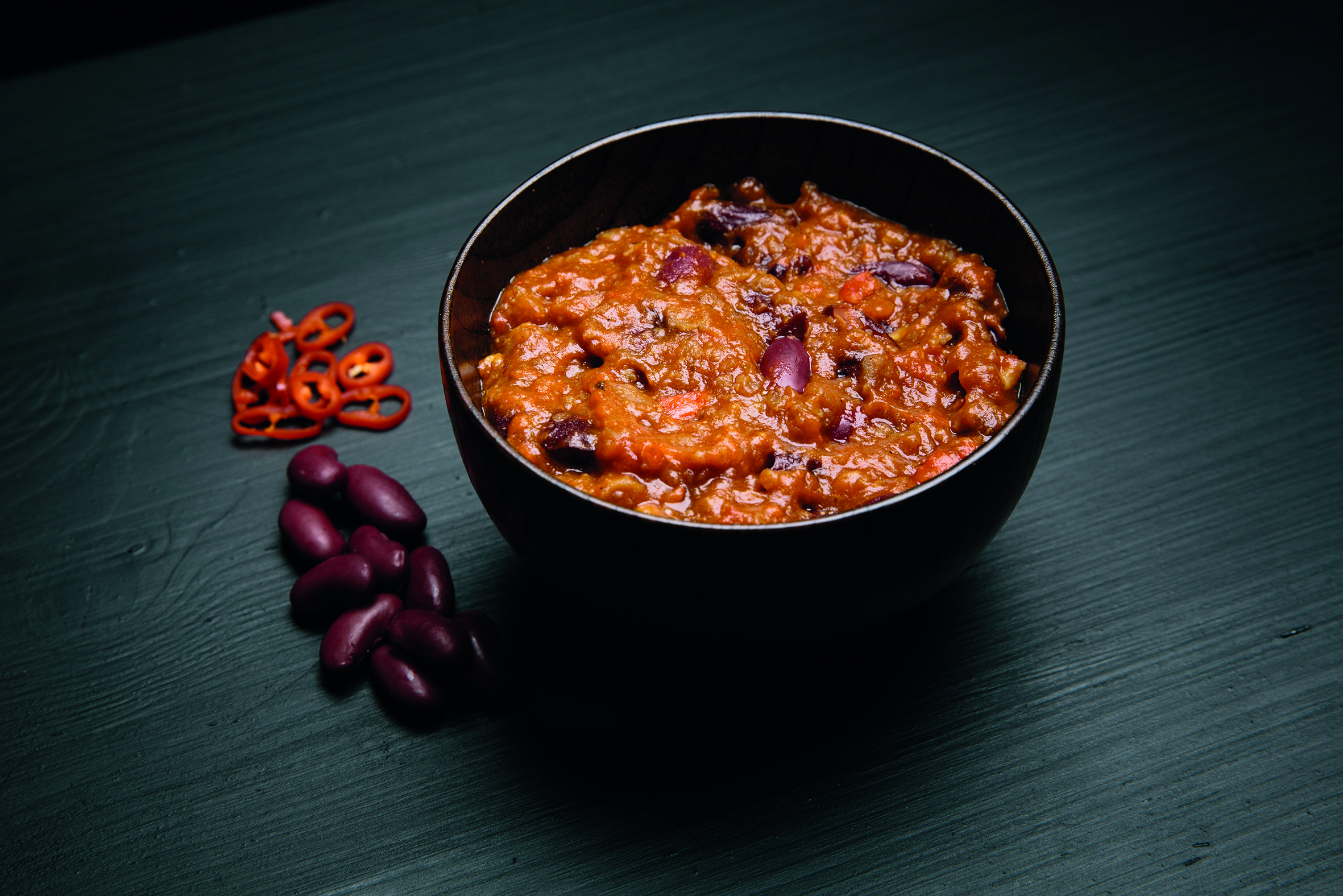 En varm og smakfull gryte med tomat, bønner og krydret kjøtt.